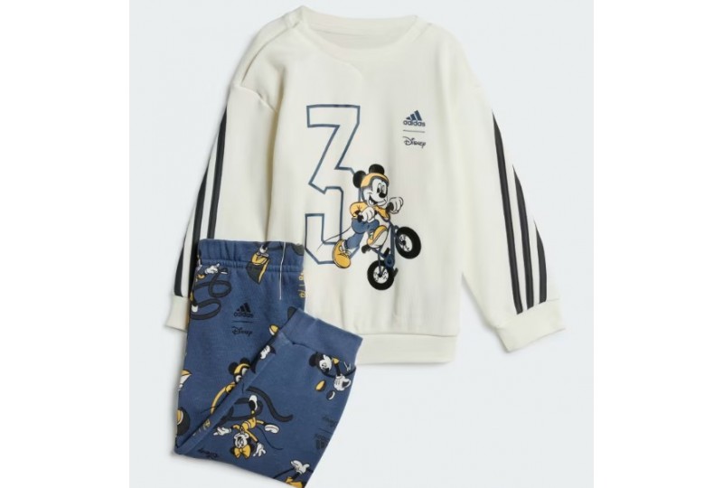 ADIDAS Completo Disney Mickey Mouse. Questo completo adidas infant composto da felpa e pantaloni è perfetto per accompagnare i più piccoli in ogni loro avventura, mentre si muovono gattoni o compiono i primi passi. La struttura in morbida spugna di cotone e i dettagli a coste assicurano il massimo comfort. Le divertenti grafiche riuniscono Topolino e la sua allegra compagnia per celebrare i Giochi Estivi. La scelta ideale per le prime avventure sportive dei più piccoli.