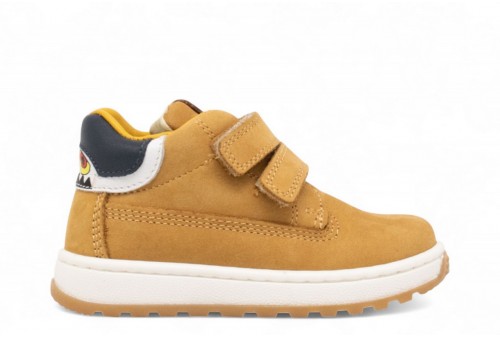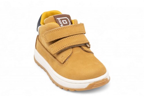 BALDUCCI SCARPONCINO IN NABUK. Scarpa primi passi bambino realizzata in pelle nabuk. Spoiler in pelle a contrasto. Linguetta con label logata. Chiusura con doppio strappo. COLORE: OCRA