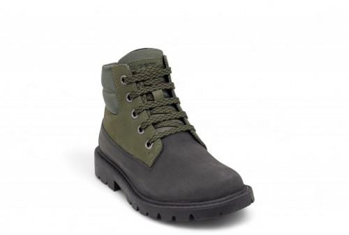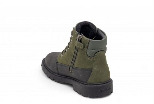 GEOX POLACCO SHAYLAX Bambino. Stivaletto junior dal fascino evergreen, perfetto per tutti i giorni. In nabuk e materiale effetto pelle nei toni del verde e del nero, Shaylax sfoggia un'estetica evergreen ispirata allo stile delle scarpe da lavoro e fondata su un interessante mix di tradizione e qualità. La classica suola a carrarmato coordinata conquista il centro della scena senza dimenticare la traspirabilità e il benessere richiesti da un modello per tutti i giorni. COLORE: green