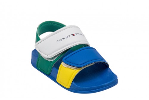 TOMMY HILFIGER BIMBO T1AF-33913-1172001 MULTICOLOR .I sandali sportivi sagomati, indispensabili nelle giornate più calde, hanno un design con due fascette a strappo pratiche da usare.