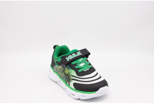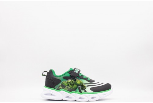DISNEY Scarpe bimbo sportive con luci. Sneakers nere e verde con stampa Hulk, chiusura con velcro. Cammina e illumina i tuoi passi.