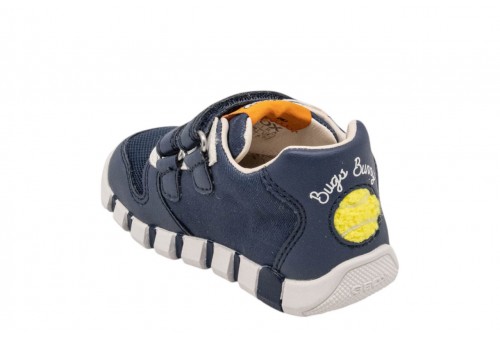GEOX B BIMBO IUPIDOO B6555B011BCC4343 NAVY . Sneaker primi passi baby flessibile e ammortizzata, nata dalla collaborazione tra Geox e Warner Bros. In questa versione blu navy chiaro, presenta grafiche dedicate al personaggio dei Looney Tunes Bugs Bunny. Realizzata in tessuto e materiale effetto pelle, Iupidoo è leggera e traspirante, la compagna ideale per le sue prime avventure.