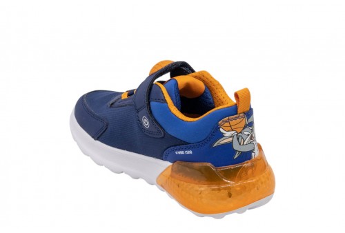 GEOX J BAMBINO ACTIVART ILL. J65LYA011CEC0659 NAVY/ORA. Sneaker junior d’ispirazione active,nata dalla collaborazione tra Geox e Warner Bros. In questa variante blu navy e arancione, infonde energia a ogni look grazie alle speciali luci nella suola che si riflettono sul suolo, creando un particolare effetto caleidoscopico. Realizzata in tessuto e materiale effetto pelle stampata, Activart Illuminus presenta patch e grafiche dedicate al personaggio dei Looney Tunes Bugs Bunny.