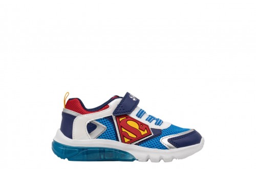 GEOX J BAMBINO CIBERDRON J65LLB01454C4320 LT BLUE/RED. Sneaker bambino dal look active e moderno, frutto della collaborazione tra Geox e Warner Bros. Realizzata in una combinazione di blu chiaro e rosso, sfoggia una tomaia in mesh e materiale effetto pelle con grafiche dedicate al supereroe Superman. Ciberdron è dotata di luci integrate nella suola, che aggiungono un tocco di divertimento ai look sportivi per la scuola e il tempo libero.