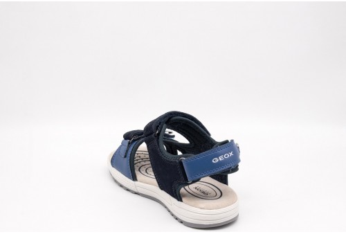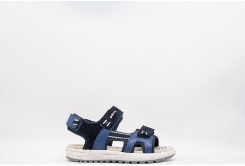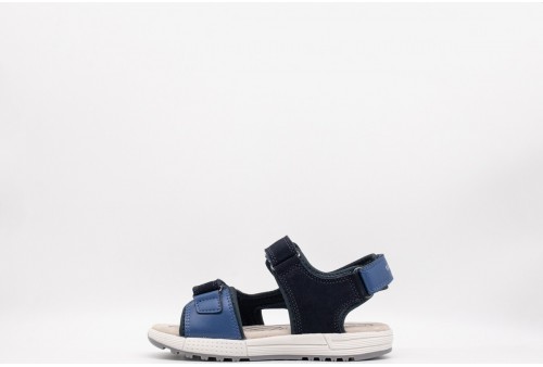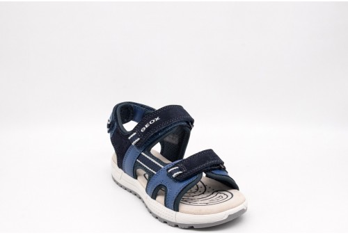 GEOX sandal alben bambino. Sandalo bambino aperto, confortevole e traspirante, dal look sporty-casual. Completamente regolabile con pratici strap, Alben è proposto in una versatile combinazione di blu navy e blu scuro. Realizzato in lycra e scamosciato, abbina ammortizzazione ottimale e stile dinamico, per accompagnare al meglio le esplorazioni estive.