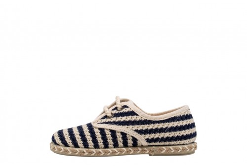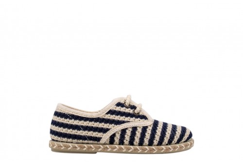 PUCHITOS BAMBINO 9500-22 REJILLA RAYAS MARINO. Scarpa stringata bambino realizzata in tela. Chiusura con lacci.