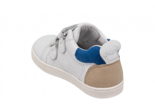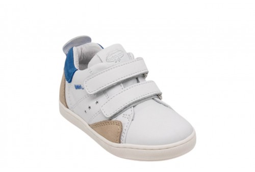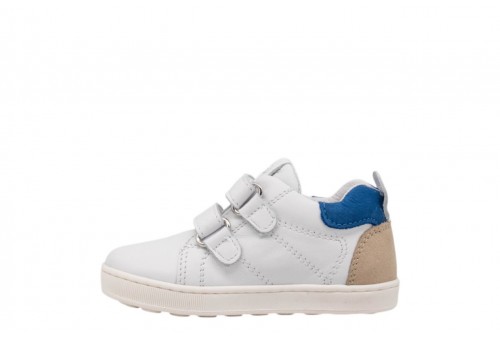 BALDUCCI bimbo CITA7209B B19971 BIANCO/BEIGE. Scarpetta bimbo primi passi realizzata in pelle con inserto in pelle scamosciata. Linguetta con label logata. Chiusura con doppio strappo. Spoiler in pelle blu.