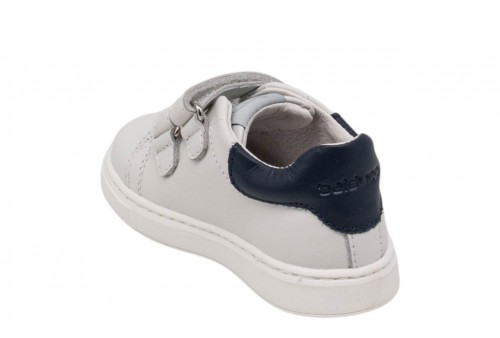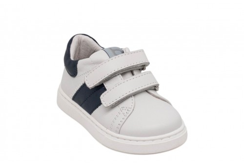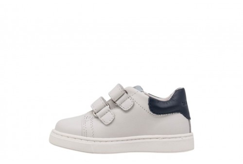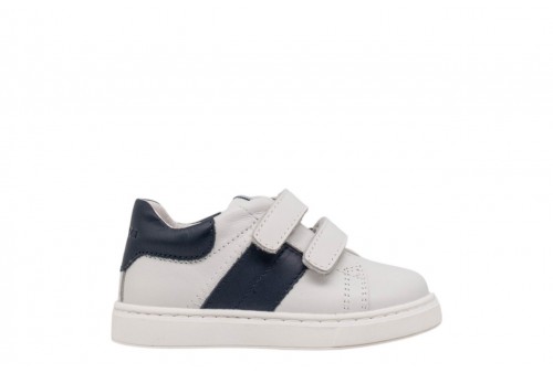 BALDUCCI BIMBO CITA7234 B19797 BIANCO. Scarpetta bimbo primi passi realizzata in pelle con banda laterale in pelle blu. Linguetta con label logata. Chiusura con doppio strappo. Spoiler in pelle.