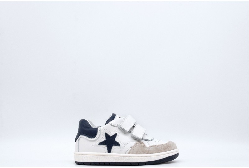 BALDUCCI SNEAKER BIMBO. Sneakers primi passi con strappi realizzata in morbida pelle. Puntale in pelle scamosciata. Dettaglio stella laterale. Talloncino in pelle a contrasto. COLORE: bianco/blu