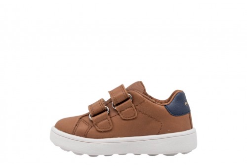 GEOX B BIMBO MINICUB B656TA0CL54C6176 COGNAC/NAVY. Sneaker baby dal design moderno e accattivante, ideale per i casual look quotidiani. In questa variante blu navy, è realizzata in morbida nappa e materiale effetto pelle. Minicub è dotata di una suola leggera, che assicura una camminata morbida e confortevole per tutto il giorno.