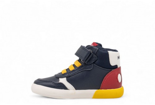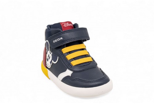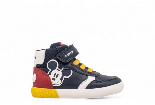 GEOX SNEAKER GISLI. Sneaker mid-cut neonato dal design sportivo e contemporaneo, pensata per accompagnare i primi movimenti dei più piccoli. Realizzata in blu navy con vivaci dettagli rossi in materiale effetto pelle, garantisce comfort e resistenza durante l'intera giornata. Gisli, frutto della collaborazione tra Geox e Disney, è il compagno ideale per le piccole avventure quotidiane, unendo stile e praticità.Calzata facile e veloce.