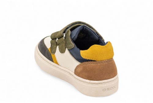 GEOX SNEAKER NASHIK. Sneaker bimbo low-cut dalle linee minimal e raffinate, che assicura comfort e traspirabilità. In questa variante che mixa avorio chiaro e verde scuro, è realizzata in morbida nappa e pregiato scamosciato per un look ricercato. Nashik è ideale per completare abbinamenti casual più sofisticati grazie al suo design essenziale e alla sua praticità d'uso.