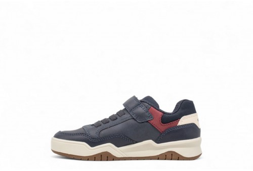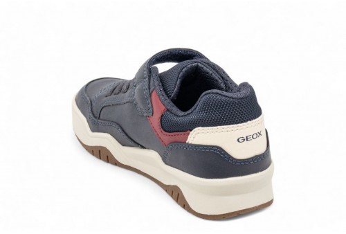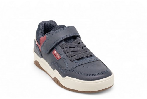 GEOX SNEAKER PERTH. Sneaker low-cut bambino dal design moderno e trendy, ideale per abbinamenti casual o sportivi. Dotata di strap e lacci elastici, in questa variante blu navy e rosso scuro, Perth abbina materiale effetto pelle cerata e nylon. Leggera e traspirante, è un modello versatile che completa con disinvoltura gli outfit di tutti i giorni, a scuola o nei momenti di gioco. Calzata facile e veloce.Rinforzo sulla punta. Sottopiede estraibile.