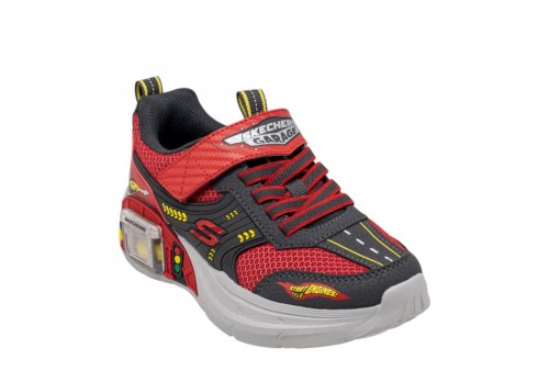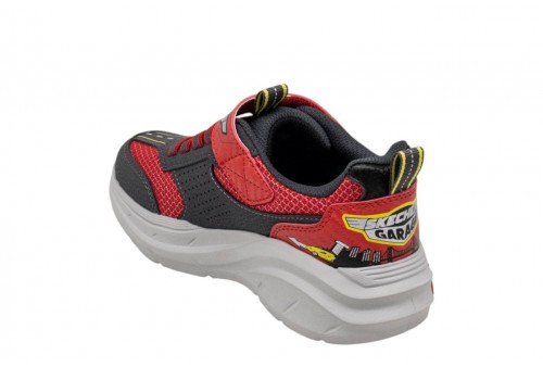 SKECHERS BAMBINO GARAGE 402150L/RDCC. Accendi i motori con chilometri di divertimento a indossare Skechers Garage! Questa scarpa Skechers leggera con chiusura adattiva presenta una tomaia in rete e sintetica con grafica a tema auto accattivante, lacci elasticizzati fissi e una tracolla regolabile sul collo. Questo design giocoso è completo di un garage scorrevole sulla suola intermedia e include due macchinette giocattolo che possono essere conservate all'interno!