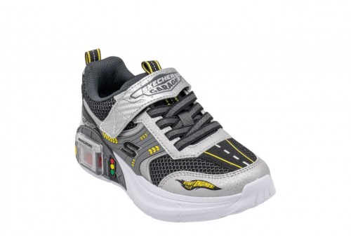 SKECHERS BAMBINO GARAGE 402150L/SLBK. Accendi i motori con chilometri di divertimento a indossare Skechers Garage! Questa scarpa Skechers leggera con chiusura adattiva presenta una tomaia in rete e sintetica con grafica a tema auto accattivante, lacci elasticizzati fissi e una tracolla regolabile sul collo. Questo design giocoso è completo di un garage scorrevole sulla suola intermedia e include due macchinette giocattolo che possono essere conservate all'interno!