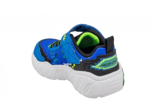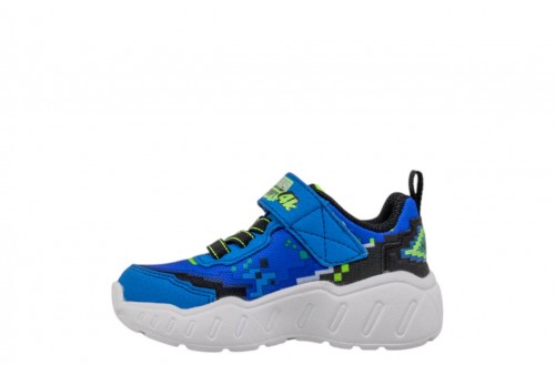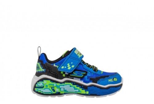 SKECHERS bimbo MEGA SCENE 402162N/BBLM BLK/BLUE/LIME . Le sneakers Skechers Mega Scene per ragazzi riflettono lo spirito di gioco dei bambini con il loro divertente design a® tema Mega-Craft. La tomaia pixelata offre un uso pratico con lacci flessibili e una cinghia regolabile, mentre la suola intermedia ammortizzante garantisce passi fluidi. E la suola intermedia giocosa a 'pezzo tecnico' rende ogni passo dinamico.