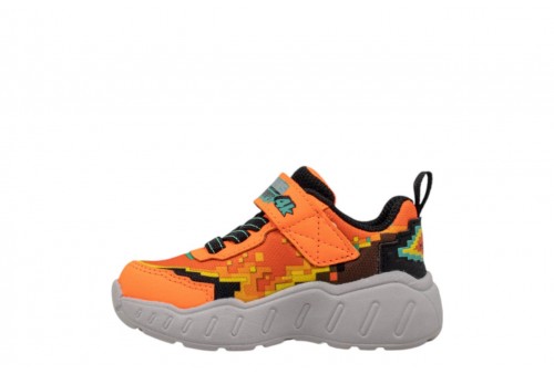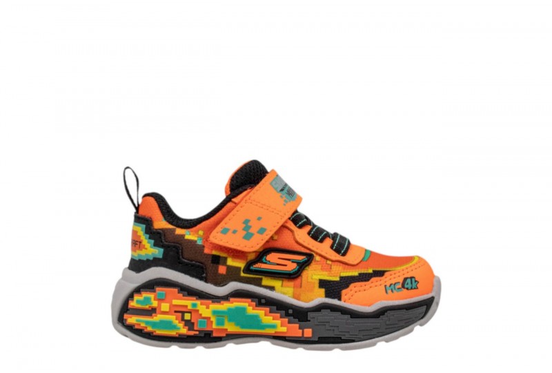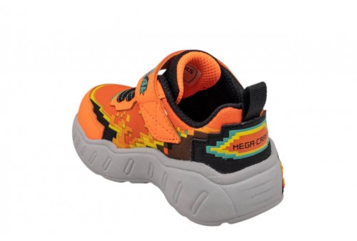SKECHERS BIMBO Mega Scene 402162N/ORBK ORANGE/BLACK . Stile block-to-block e comfort sportivo si abbinano a Skechers Mega Scene. Questo design tematico Mega-Craft® è realizzato con una chiusura adattiva Skechers e presenta una tomaia pixelata con sovrapposizioni sintetiche, lacci elastici, una cinghia regolabile sul collo e una suola intermedia in stile tecnico divertente.