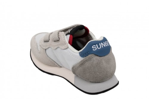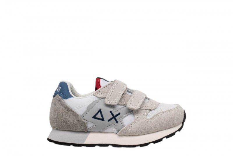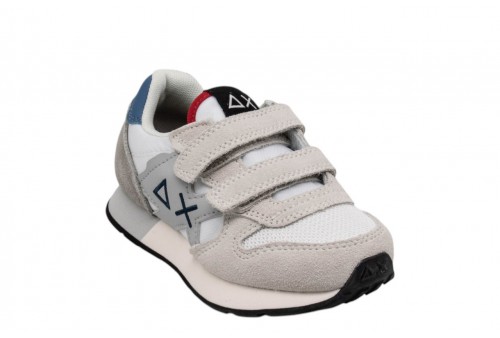 SUN68 BAMBINO Z36315B/01 BOY'S JAKI SOLID BIANCO .La sneaker Jaki è il best seller SUN68 con maxi patch sul lato e il logo iconico ricamato a contrasto. Per i bambini più piccoli, il modello è rifinito con chiusura a strappo per la massima versatilità. Abbinala ai bermuda in felpa e a una t-shirt per un look fresco e dinamico, ideale per affrontare con energia i momenti di gioco più intensi.