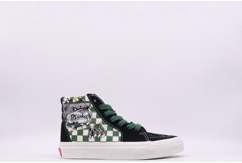 Ispirate al primo leggendario modello dal profilo alto, le Vans Since 1966 Sk8-Hi da bambino rendono omaggio alle mascotte sportive retrò