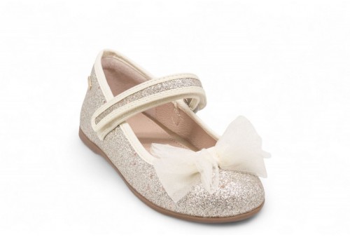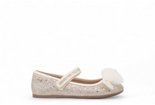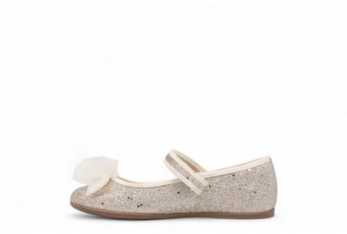 MAYORAL BALLERINA GLITTERATA CON FIOCCO. Ballerina realizzata in ecopelle glitterata con fiocco decorativo. COLORE: PERLA