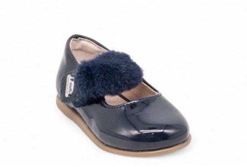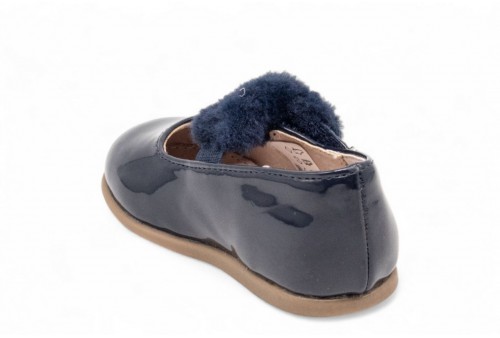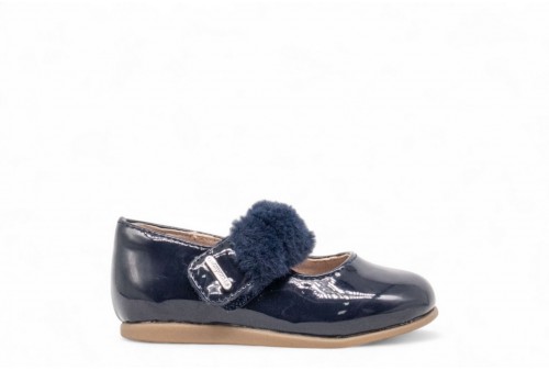 MAYORAL BALLERINA IN VERNICE CON ECOPELLICCIA. Ballerina realizzata in ecopelle effetto vernice con ecopelliccia sul cinturino. COLORE: MARINO
