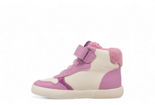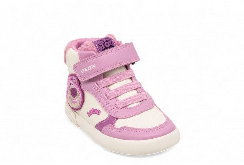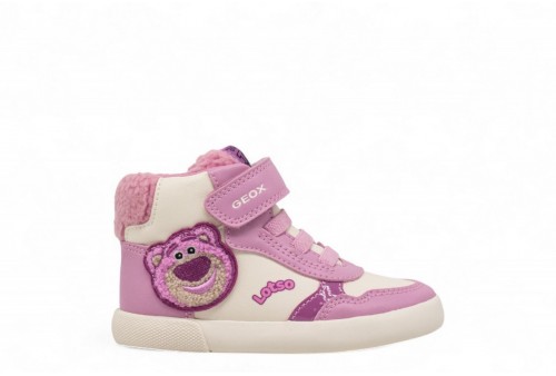 GEOX SNEAKER GISLI LOTSO. Sneaker mid-cut bimba dal look casual. Qui proposta in bianco e rosa con decorazioni dedicate al personaggio di Lotso, è facile da regolare grazie a strap e lacci elastici. Realizzata in materiale effetto pelle con dettagli in faux fur, Gisli è perfetta per completare gli outfit quotidiani con un tocco sportivo.Calzata facile e veloce. Sottopiede estraibile; Sottopiede antibatterico; Sottopiede rivestito in pelle atossica chrome-free.