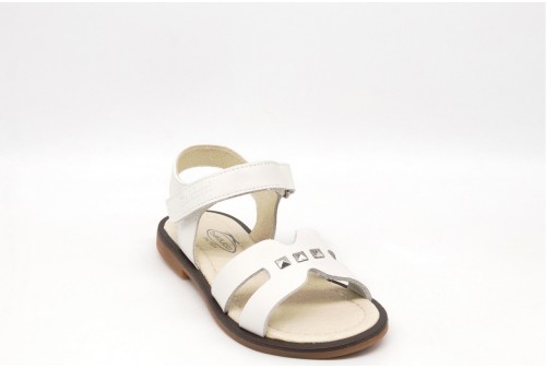 BALDUCCI SANDALO BAMBINA. Sandalo realizzato in pelle con fascia frontale decorata da borchiette. Strappo alla caviglia. COLORE: BIANCO