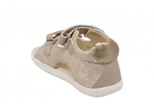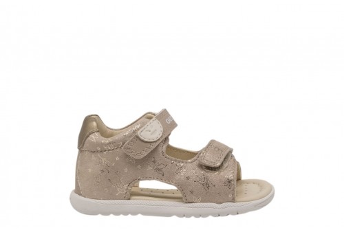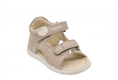 GEOX B S. MACCHIA B254WA007NFC8560 BEIGE/PLA. Sandalo primi passi neonata flessibile e leggero, con tallone chiuso e punta aperta. In questa versione beige e platino, Macchia è realizzato in camosciato stampato e materiale effetto pelle perlata. Modello evergreen dotato di pratico doppio strap, si abbina facilmente ai mini look casual o più sportivi della bella stagione.