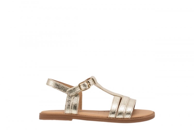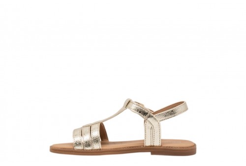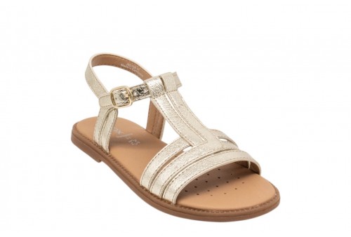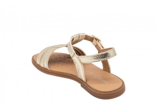 GEOX J S.KARLY J6535B000BNC2010 PLATINUM. Sandalo flat bambina, ideale per dare un twist femminile agli outfit quotidiani. Qui declinato in platino, Karly è un modello leggero e traspirante dall'eleganza raffinata. Realizzato in materiale effetto pelle metallizzata, è perfetto anche per le occasioni speciali.