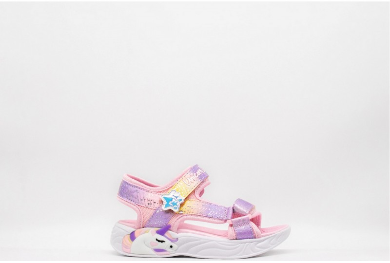 SKECHERS UNICORN DREAMS - MAJESTIC BLISS BAMBINA. Questo sandalo luminoso presenta una tomaia in tessuto satinato sfumato e mesh, con una comoda soletta ammortizzata. COLORE: LIGHT PINK/MULTI