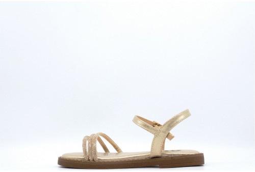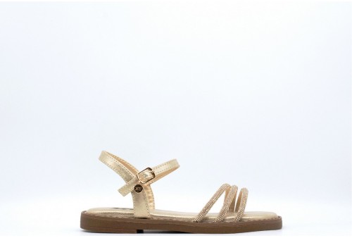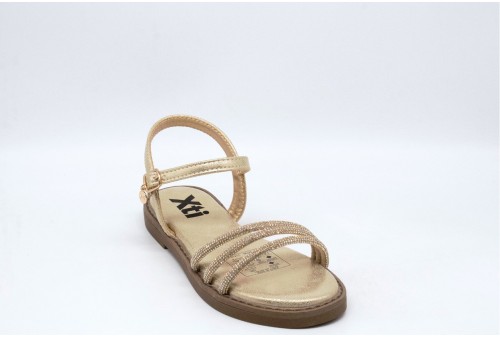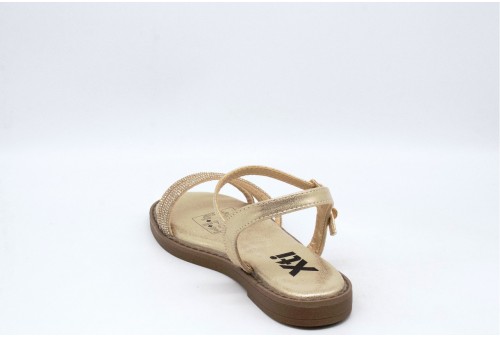 XTI SANDALO CON strass. Sandalo con fasce strassate realizzato in simil pelle effetto laminato. Chiusura alla caviglia con cinturino. COLORE: oro