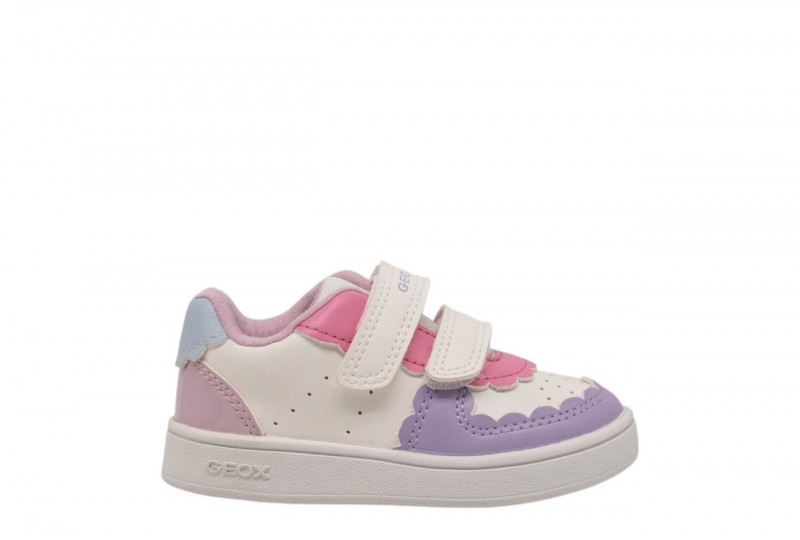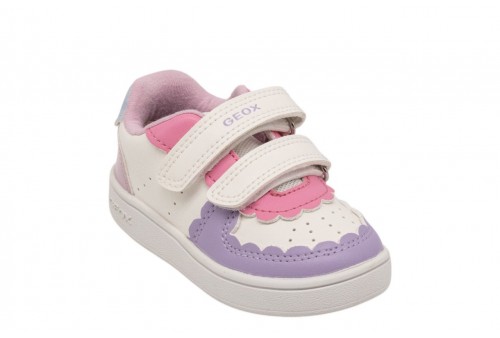 GEOX B ECLYPER B655MB000BCC1R8S WHITE/LILAC. Sneaker baby dal design essenziale d’ispirazione tennis court. Qui proposta in bianco e lilla chiaro, Eclyper è il modello ideale per completare i mini casual look di tutti i giorni. Realizzata in materiale effetto pelle, è flessibile, traspirante e comoda da regolare, grazie alla pratica chiusura con doppio strap.