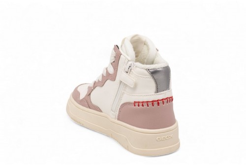 GEOX SNEAKER ALTA LESTRELLA Bambina. Sneaker bambina che unisce linee sportive a dettagli glamour per uno stile contemporaneo e accattivante. In questa versione che mixa bianco e rosa, è realizzata in materiale effetto pelle per garantire resistenza e comfort durante l'uso quotidiano. Lestrella è l'alleata perfetta per completare i suoi look sportivi durante le attività di tutti i giorni. COLORE: white/rose
