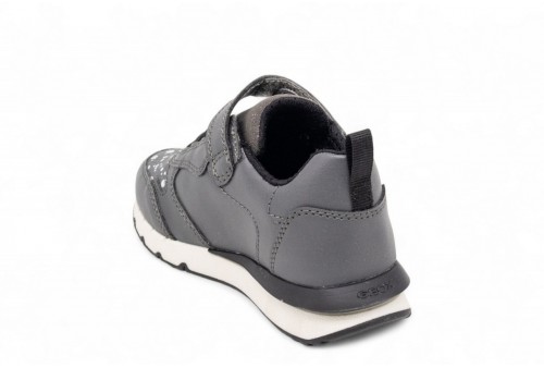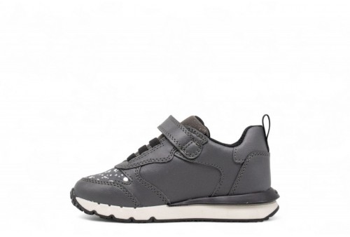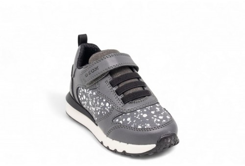 GEOX SNEAKER FASTICS. Sneaker low-cut bambina casual e traspirante, dall'allure trendy e femminile. La sua tomaia grigio scuro è decorata da una delicata stampa che regala un accento sporty-chic ai suoi look quotidiani. Realizzata in materiale effetto pelle e materiale effetto scamosciato brillante, Fastics è confortevole e ammortizzata, ideale sia a scuola sia per le passeggiate in città.Calzata facile e veloce.Rinforzo sulla punta.