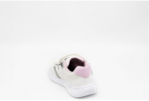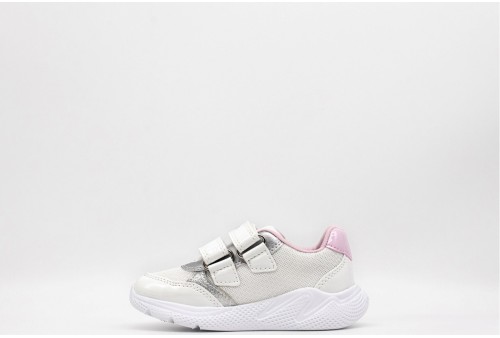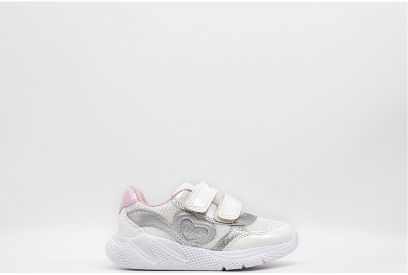 GEOX SNEAKER SPRINTYE BIMBA. Sneaker primi passi in similpelle. Chiusura con strappi. COLORE: WHITE/SILVER