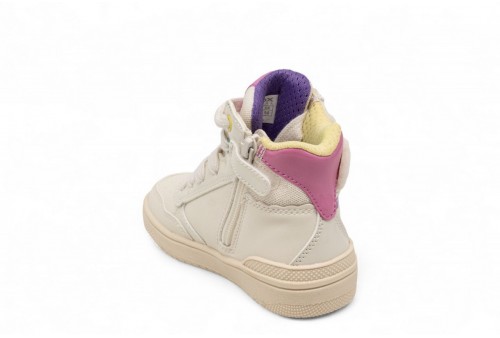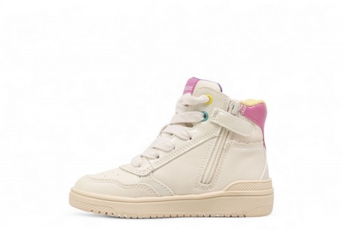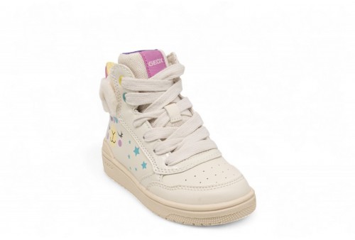 GEOX SNEAKER WASHIBA. Sneaker bambina dal design essenziale, pensata per accompagnare con stile le attività quotidiane tra scuola e tempo libero. In questa variante che mixa avorio chiaro e dettagli multicolore, è realizzata in materiale effetto pelle, vernice e materiale effetto pelle perlata. Washiba rappresenta la scelta ideale per chi cerca una calzatura pratica ma alla moda, capace di adattarsi a diverse occasioni della giornata.Calzata facile e veloce.Rinforzo sulla punta. Sottopiede estraibile.