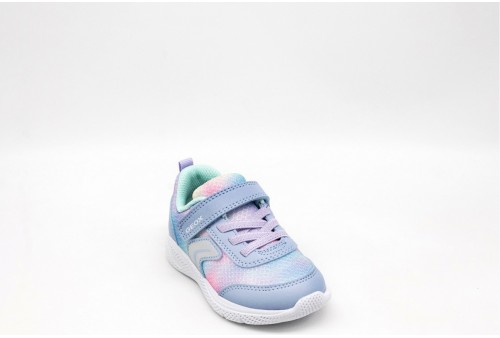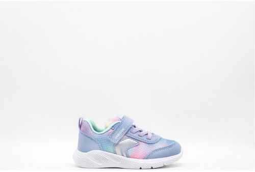 GEOX SNEAKERS Sprintye Baby. Sneaker low-cut baby leggera e traspirante, dal design moderno d'ispirazione running. Si fa notare per il suo appeal sportivo e dinamico, abbinato a una suola ammortizzata garanzia di massimo comfort. Dotata di strap e comodi lacci elastici, Sprintye è realizzata in mesh e materiale effetto pelle e completa al meglio qualsiasi outfit casual. COLORE: SKY/MULTI
