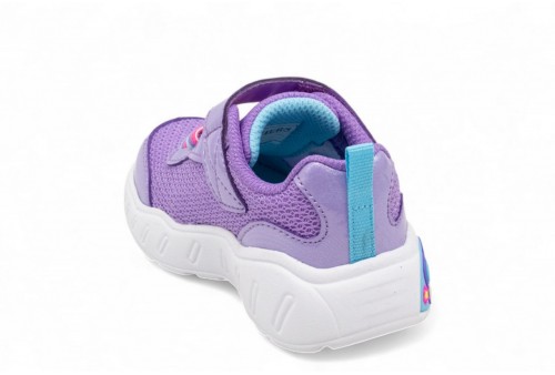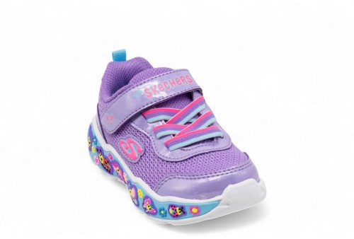 Skechers Play Scene - Fun Squad. Questa adorabile sneaker presenta una tomaia in mesh con sovrapposizioni glitterate, lacci elasticizzati e chiusura adattiva e un'intersuola ben ammortizzata con grafiche giocose a tema.