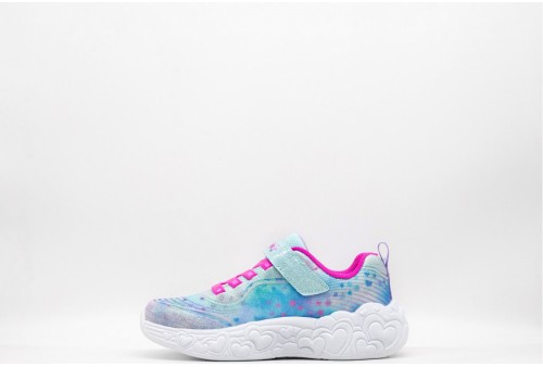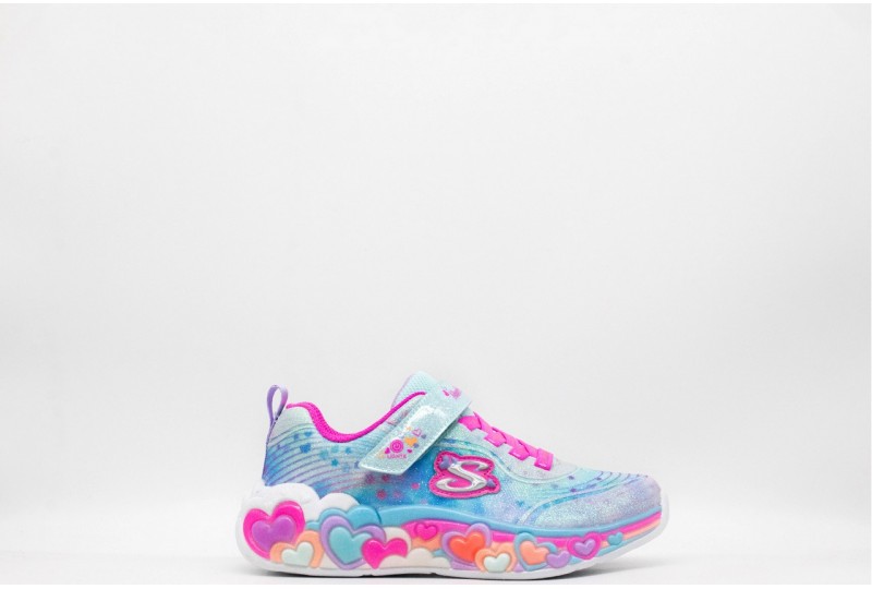 SKECHERS S-Lights: Eternal Heart Lights. Lo stile sportivo diventa acceso e adorabile con le Skechers S-Lights®: Eternal Heart Lights. Questo design illuminato presenta una tomaia in mesh scintillante e glitter sintetici con lacci elasticizzati sul davanti e una chiusura adattiva Skechers. COLORE: LIGHT BLUE/MULTI