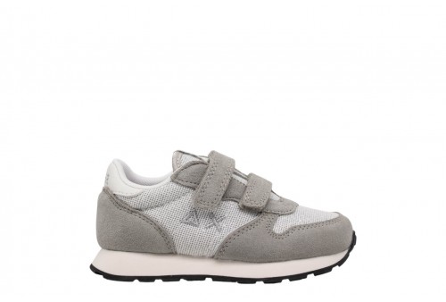 SUN68 Girl's ally glitter textile (baby) Z36403B/44. Sneakers bambina realizzata in tessuto sui toni del grigio/argento con inserti glitterati. Chiusura con strappo.