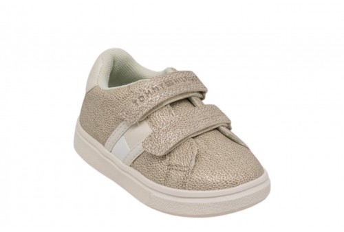 TOMMY HILFIGER BIMBA T1A9-34232-0745514 PLATINUM . Le sneakers con glitter e pratiche fascette a strappo aggiungono un tocco scintillante ai look di tutti i giorni e agli outfit per le feste.