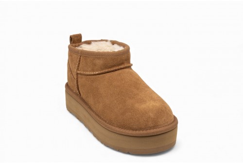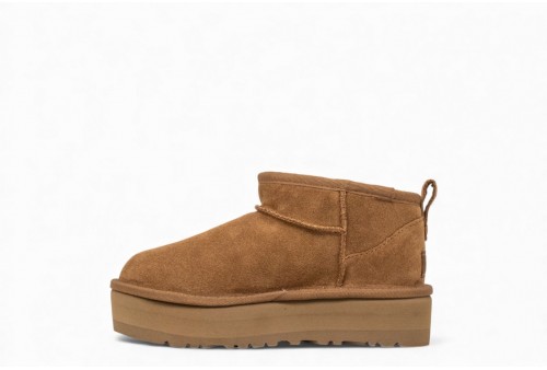 UGG Stivali Classic Ultra Mini Platform Bambini . Classic Ultra Mini Platform da donna ora è disponibile in una taglia mini. Questa versione più piccola è realizzata con il medesimo incredibile comfort, la doppia cucitura iconica e il plateau. Gli stivali Classic Ultra Mini con plateau sono completamente foderati con il morbidissimo misto lana UGGplush™ e presentano una tomaia in soffice pelle scamosciata, per offrire anche ai più piccoli l’inconfondibile sensazione UGG®. Grazie al tirante posteriore, i bambini riusciranno a indossare gli stivali con facilità.