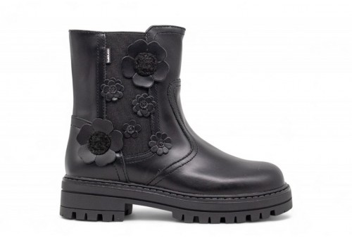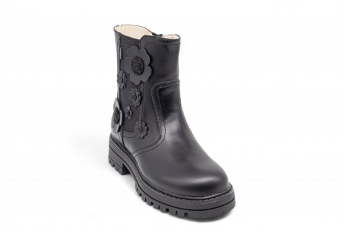 BALDUCCI STIVALETTO FIORI 3D. Stivaletto bambina realizzato in pellecon fiori 3D applicati sul lato esterno. Chiusura con zip laterale. COLORE: nero