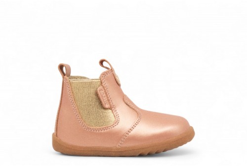 Bobux I Walk Jodhpur Rose Gold. Questo stivale dal design tradizionale permette lo sviluppo muscolare del piede favorendo l'irrobustimento della volta plantare. TOE BOX ampia per favorire la mobilità dell'alluce. Realizzato in pelle.