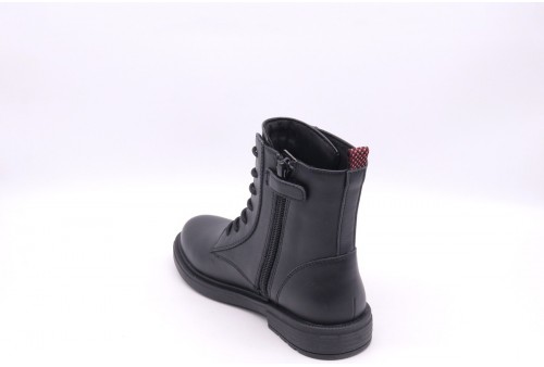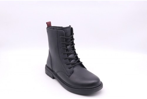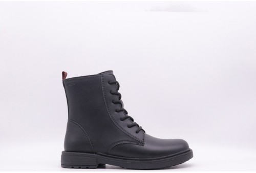 GEOX ANFIBIO Eclair Bambina. Stivaletto bambina, per un comfort e una traspirabilità quotidiani. Con la sua tomaia in materiale effetto pelle total black, Eclair è il modello ideale da indossare tutti i giorni senza rinunciare allo stile. Comodo e versatile, presenta un'allacciatura frontale che ricorda gli anfibi militari e ne esalta il fascino casual. COLORE: NERO