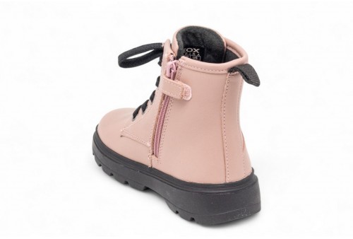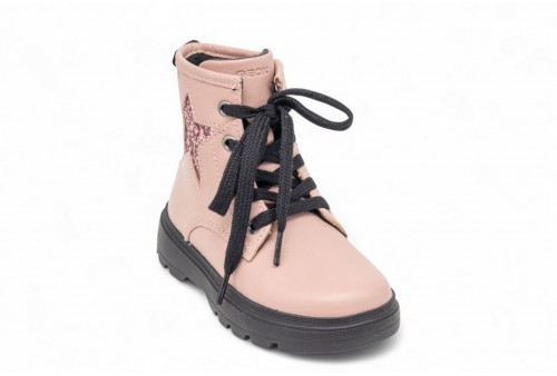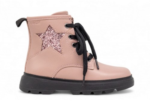 geox anfibio kiddartah. Stivaletto bimba stringato in stile combat con comoda suola chunky, che unisce grinta e contemporaneità per le sue prime avventure. In questa variante rosa antico, la tomaia combina morbida nappa e tessuto glitterato per un effetto sofisticato e tenero allo stesso tempo. Kiddartah è pensato per accompagnare la piccola sia negli outfit quotidiani che nelle occasioni speciali, aggiungendo un tocco di carattere ai suoi look.Protezione dal freddo grazie ad un livello ottimale di isolamento termico. Sottopiede estraibile; Sottopiede antibatterico; Sottopiede rivestito in pelle atossica chrome-free.