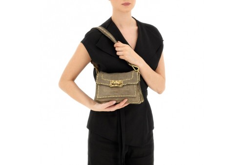CAMPOMAGGI BAULETTO AGNESE s. Bauletto rettangolare con tracolla in pelle regolabile e removibile. Perfetto per i tuoi look da giorno ma adatto anche ad una serata elegante. Interno completamente foderato. Realizzato in Pelle di vacchetta concia vegetale tinta in capo e borchie dorate. Dust bag in cotone e kit crema per la cura della borsa inclusi. Made in Italy.Chiusura con girello. Manico removibile. N Scomparti:4. Accessori Inclusi: Tracolla, Shopping in Tessuto, Kit crema.COLORE: CEMENTO