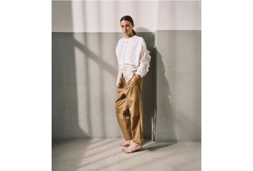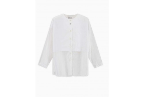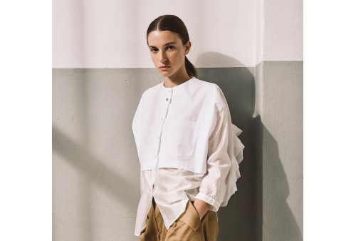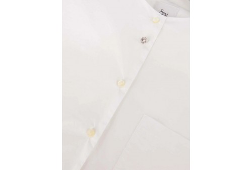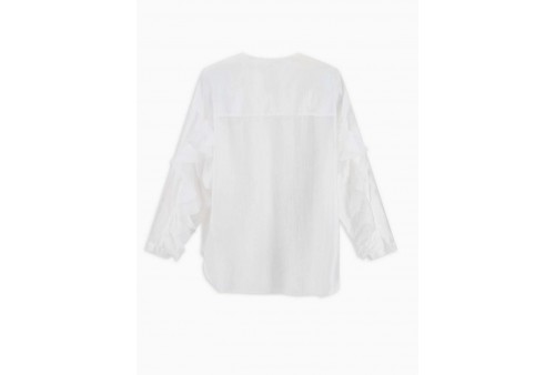 8PM D8PM61C26/188 CHICACO CAMICIA LATTE. Camicia a maniche lunghe in mussola di viscosa e popeline di cotone, scollo alla coreana, bottone gioiello sul davanti, ruches nella maniche, vestibilità over,