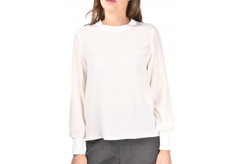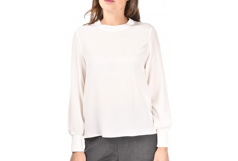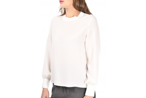 GRAN SASSO BLUSA IN SETA. Blusa in seta con collo e polsi in maglia di cotone. Un capo dalla linea minimale, versatile e contemporanea, perfetto per un look quotidiano comodo e raffinato. Regular fit. COLORE: BIANCO