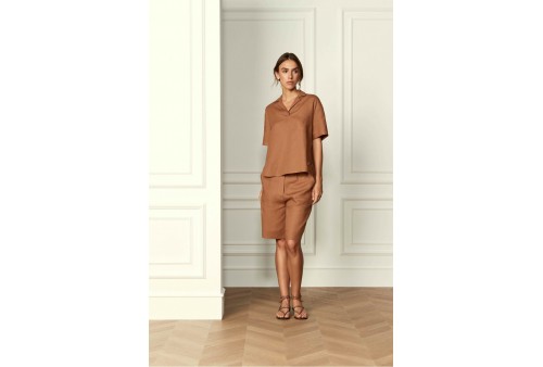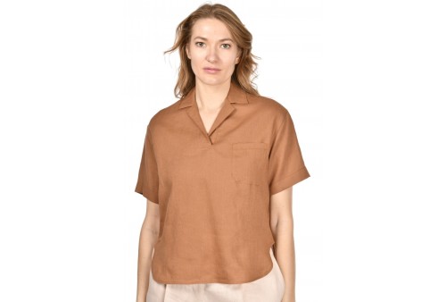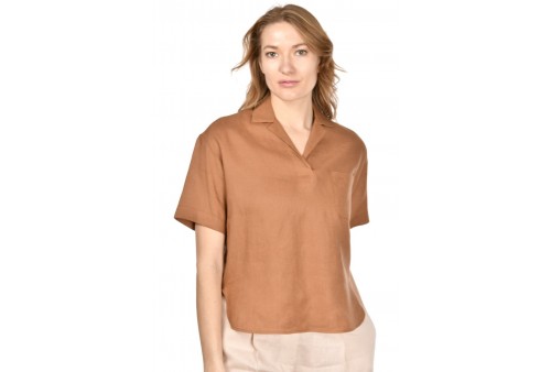 GRAN SASSO DONNA 61233/50000/167 POLO CAMMELLO. La polo skipper Gran Sasso in lino con taschino applicato, è perfetta per look estivi in cui non si vuole rinunciare al comfort e allo stile.